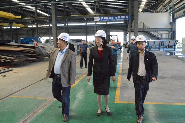 在江西富煌總經理喬東應陪同下,錢昀一行參觀了江西富煌展廳,了解安徽富煌集團及江西富煌的發展歷程、產業規模、車間安裝與生產情況。在了解到江西富煌2017年產能和銷售額等情況后,錢昀表示贊賞,鼓勵江西富煌再接再厲,把握發展先機、創新方式方法,加快自身發展壯大。