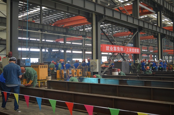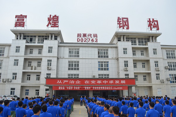為迎接“五一”國際勞動節(jié),充分展示廣大職工立足本崗、創(chuàng)新創(chuàng)業(yè)的風采,進一步掀起職工技術比武和崗位練兵的熱潮。4月28日上午9時,由德安縣總工會主辦、江西省富煌鋼構有限公司承辦的德安縣中國夢・勞動美--“富煌杯”技能競賽在江西富煌正式啟動。德安縣政協(xié)副主席、縣總工會主席桂天華,縣總工會副主席魏霞,縣總工會副主席張峰,江西富煌總經(jīng)理喬東應、常務副總經(jīng)理吳捷,江西富煌工會主席鉏金春等公司領導班子、裁判員、參賽選手、公司員工共300余人參加此次活動。.jpg)